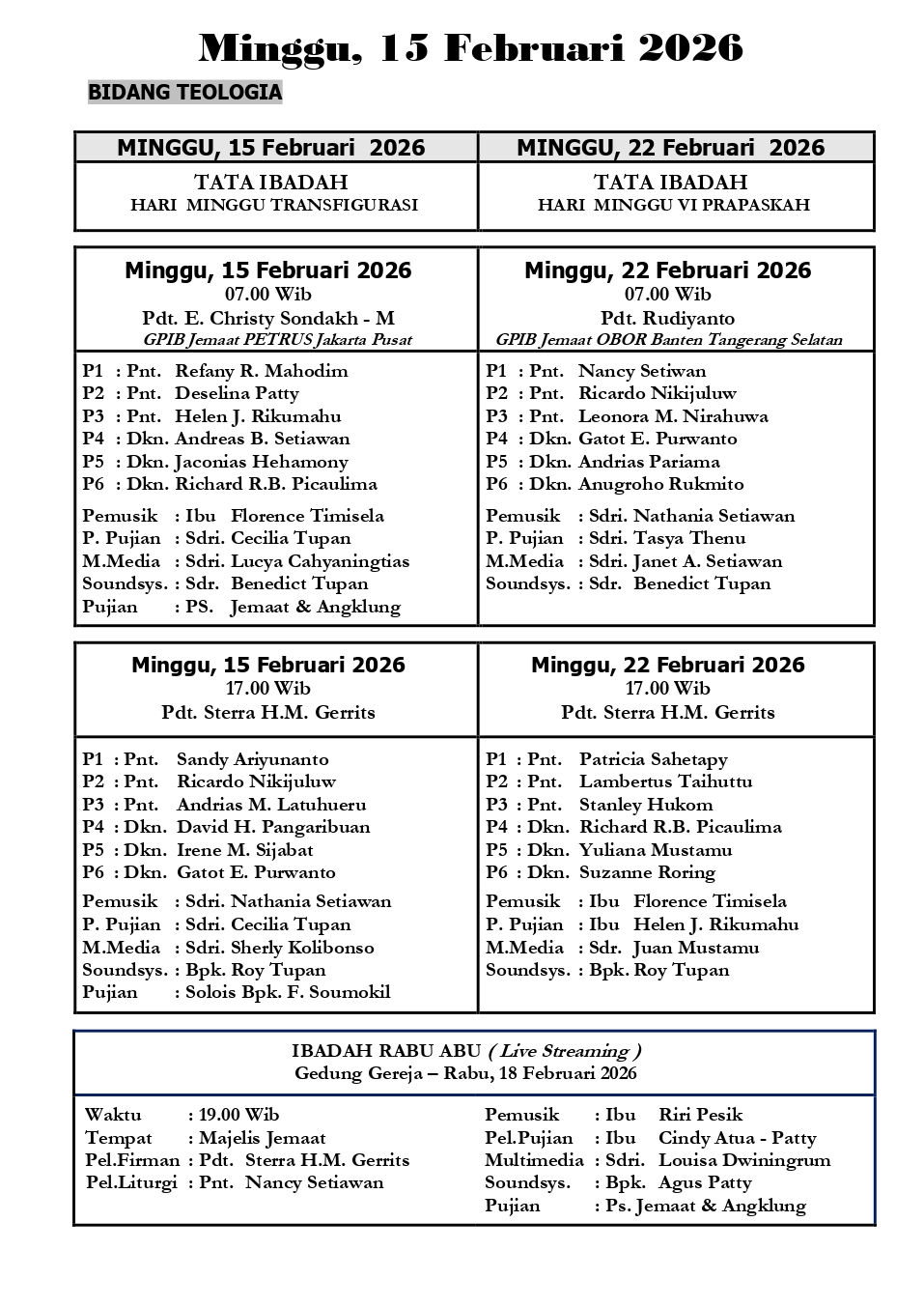 Warta Jemaat - GPIB Bethesda (15 Februari 2026)
