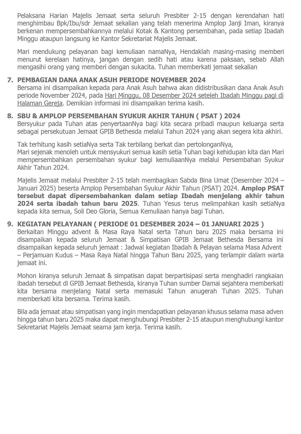 Warta Jemaat (Minggu, 08 Desember 2024)